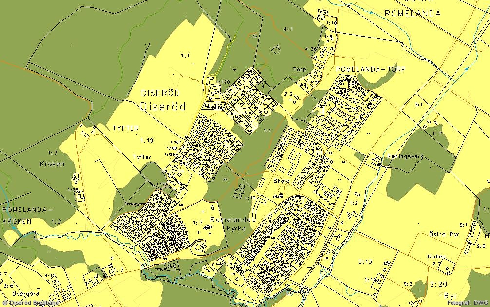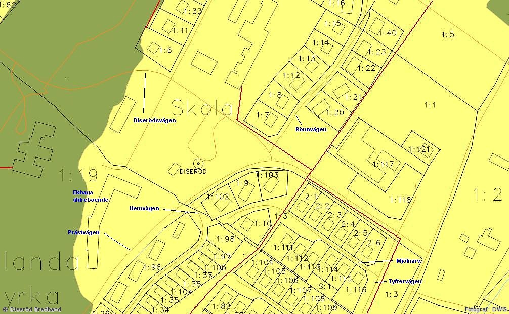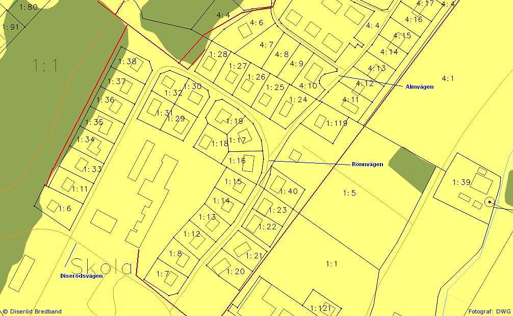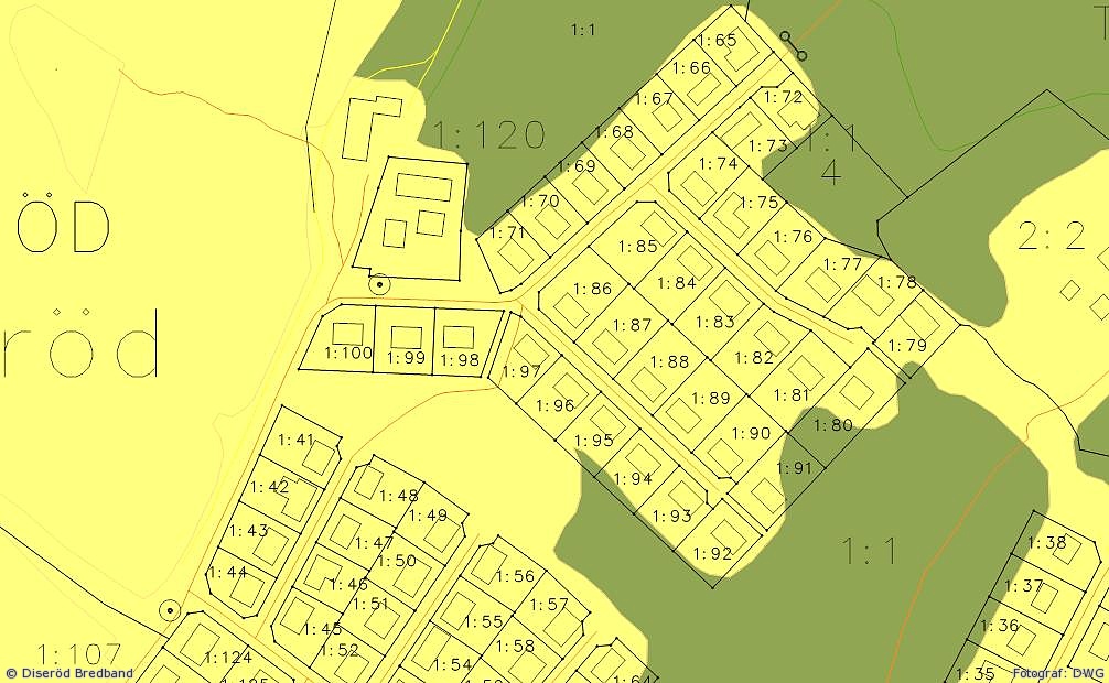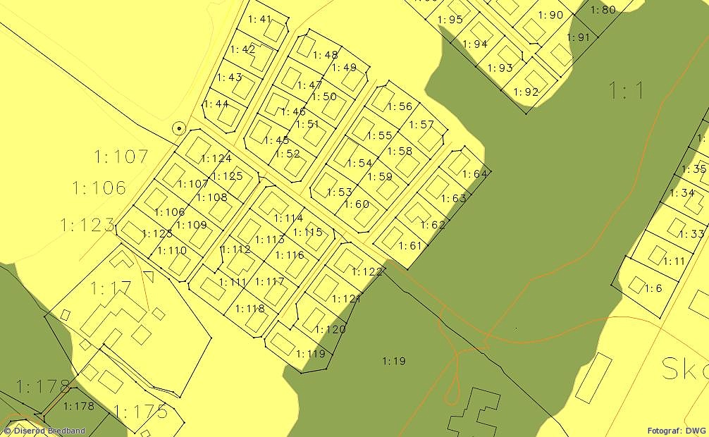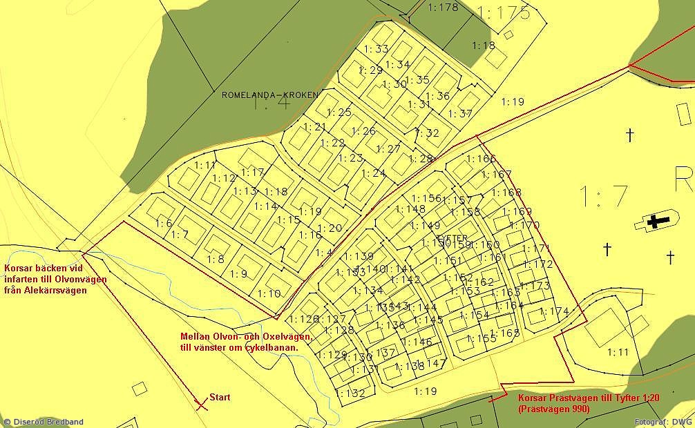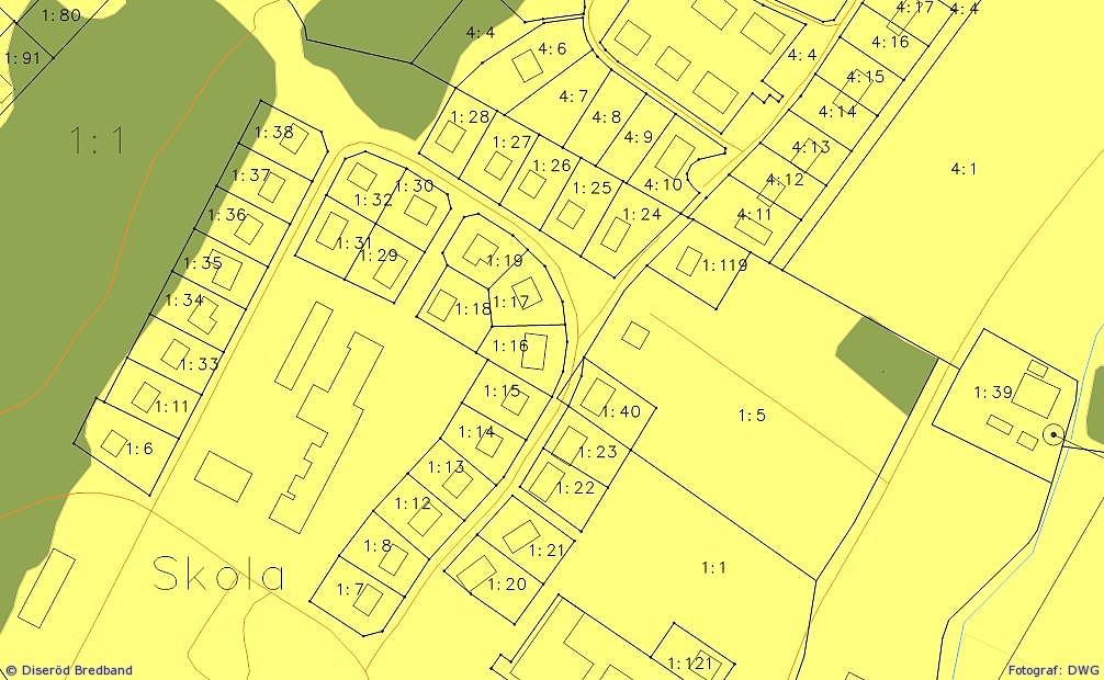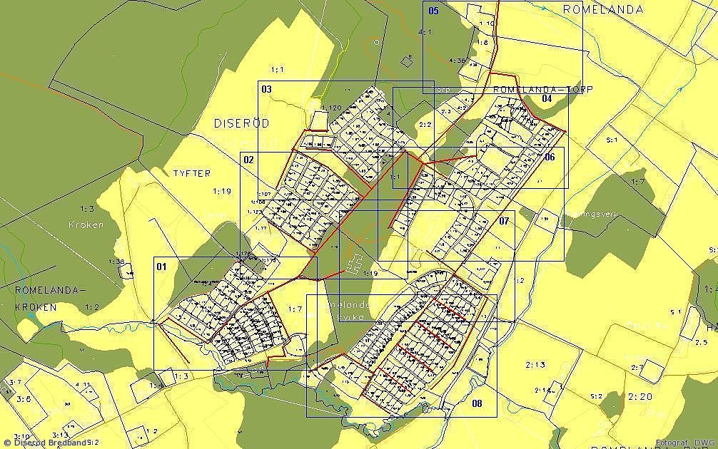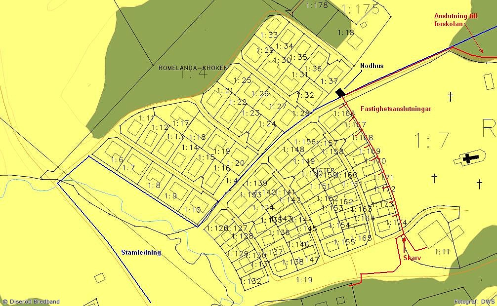 Övriga kartor med projekterad kabeldragning helt eller delvis utritad.